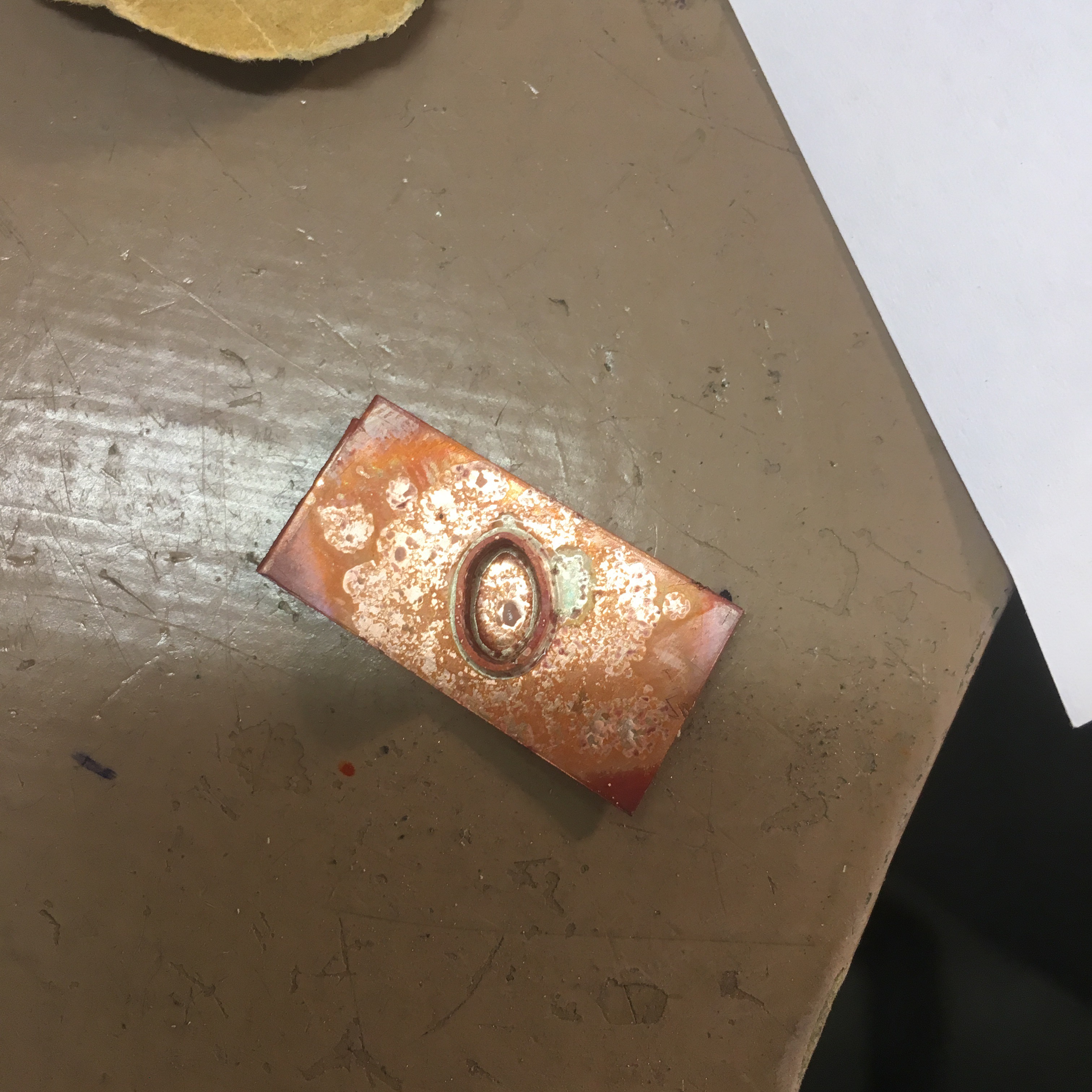 Then made it into a small ring, squished it to size to fit around the stone, followed by making a base for the stone to sit on. I stupidly forgot to take the protective plastic off when I soldered the casing ring onto the base so stunk the workshop out with lovely black smoke as the plastic sizzled! Epic fail!
