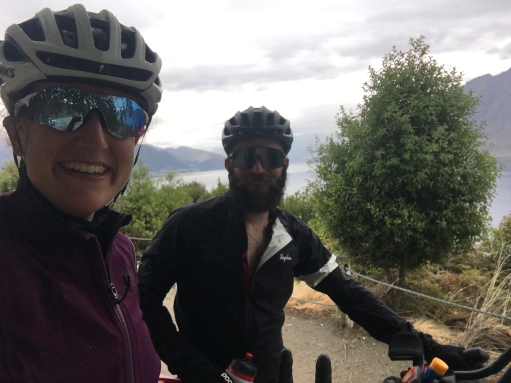 The road takes us alongside Lake Wanaka, then up and over ‘the peak’ to cycle alongside lake Hawea. We’re still not entirely sure how to pronounce Hawea, but are doing so with a Geordie accent and it works for us! Hawea pet! (James: the pet is just for added style)